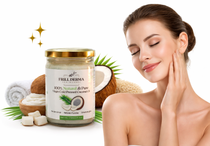 Experience the power of 100% Natural Virgin Coconut Oil from Frillderma. Cold pressed from fresh coconuts to deeply nourish your hair and skin naturally.